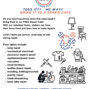 Millerton Repair Cafe 25 Oct 11:00 am - 3:00 pm NorthEast-Millerton Library: Annex 28 Century Blvd., Millerton, NY 12546