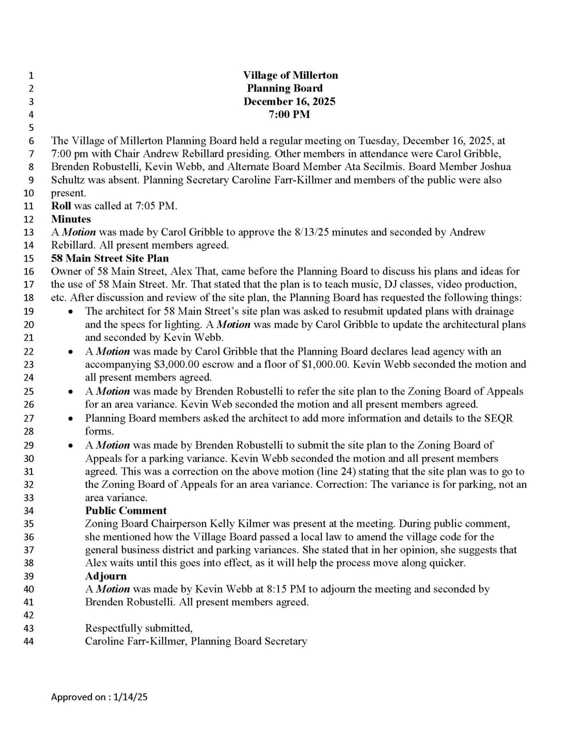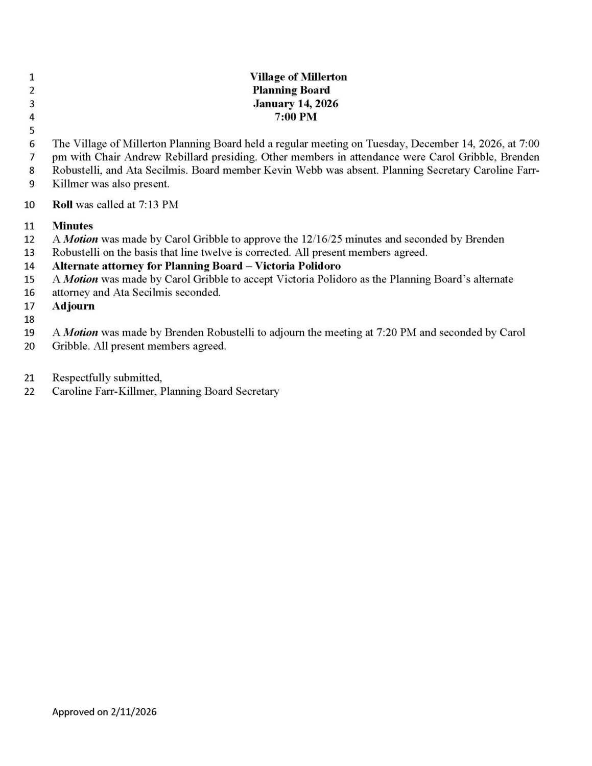 Caroline Farr-Killmer, Planning & Zoning Board Secretary