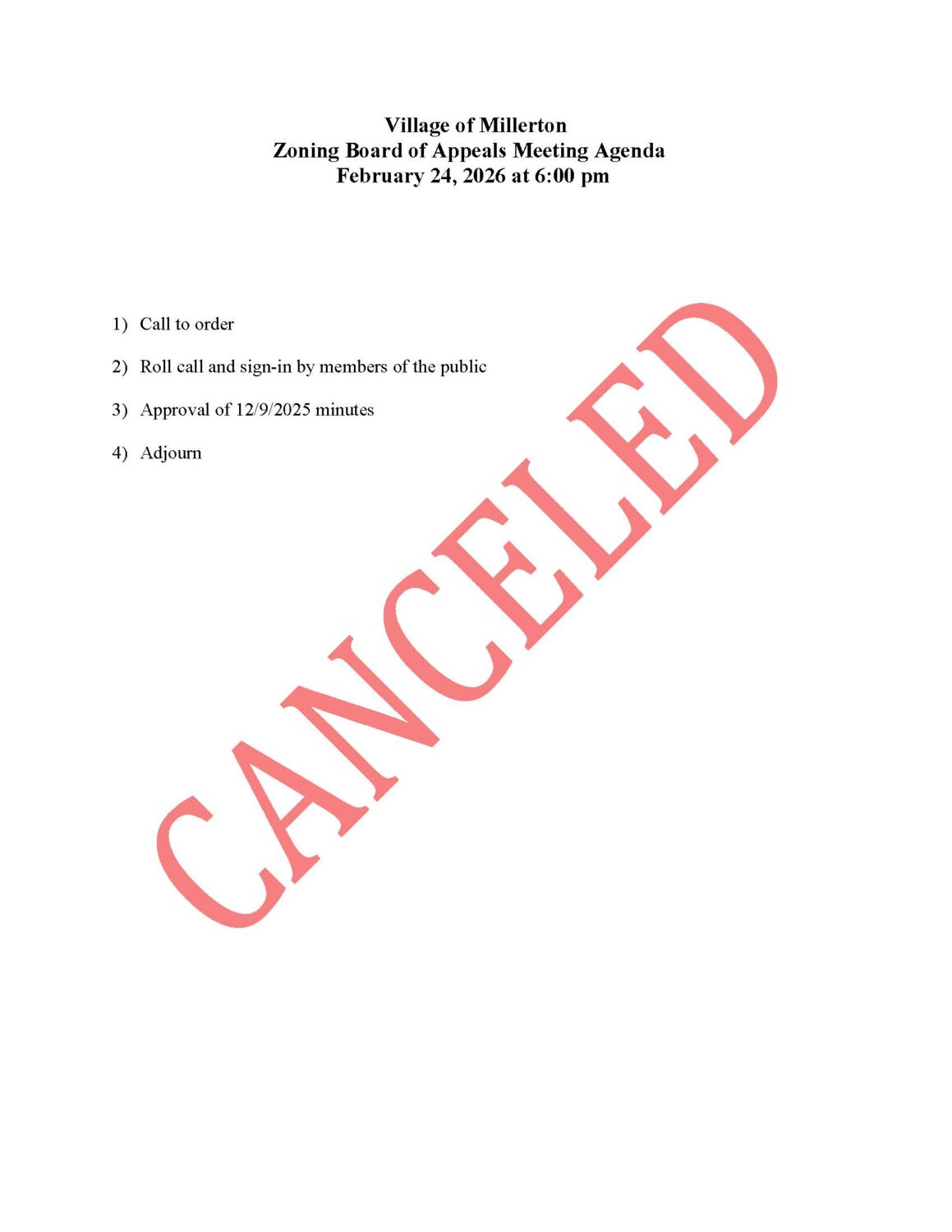 Meetings are held at the Village Hall located at 5933 N. Elm Avenue, Millerton, NY 12546